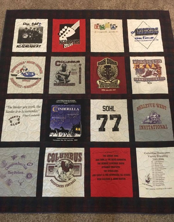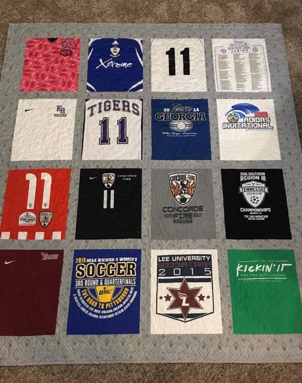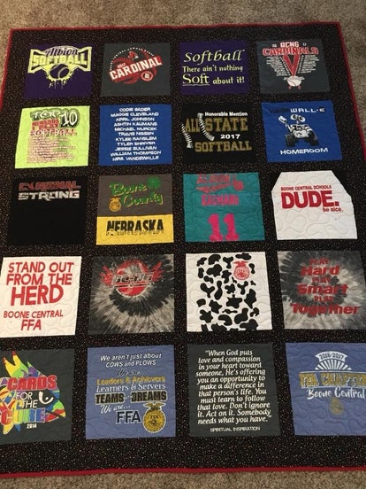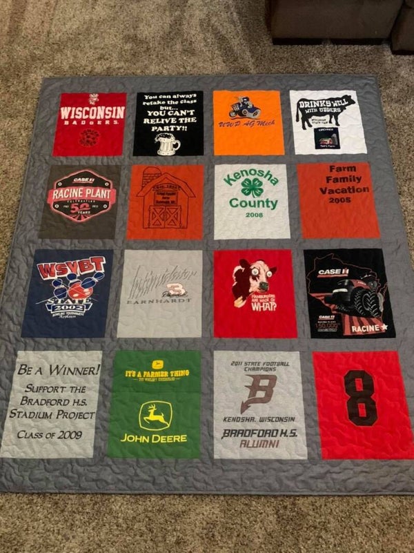 This item is a custom t-shirt quilt made to order. I make personalized memory quilts for high school graduates, college graduates, athletes, coaches, cancer survivors, and more! What a great heirloom (and a great reason to get your closets cleaned out!) for the loved one in your life. Please allow 8-12 weeks for delivery.